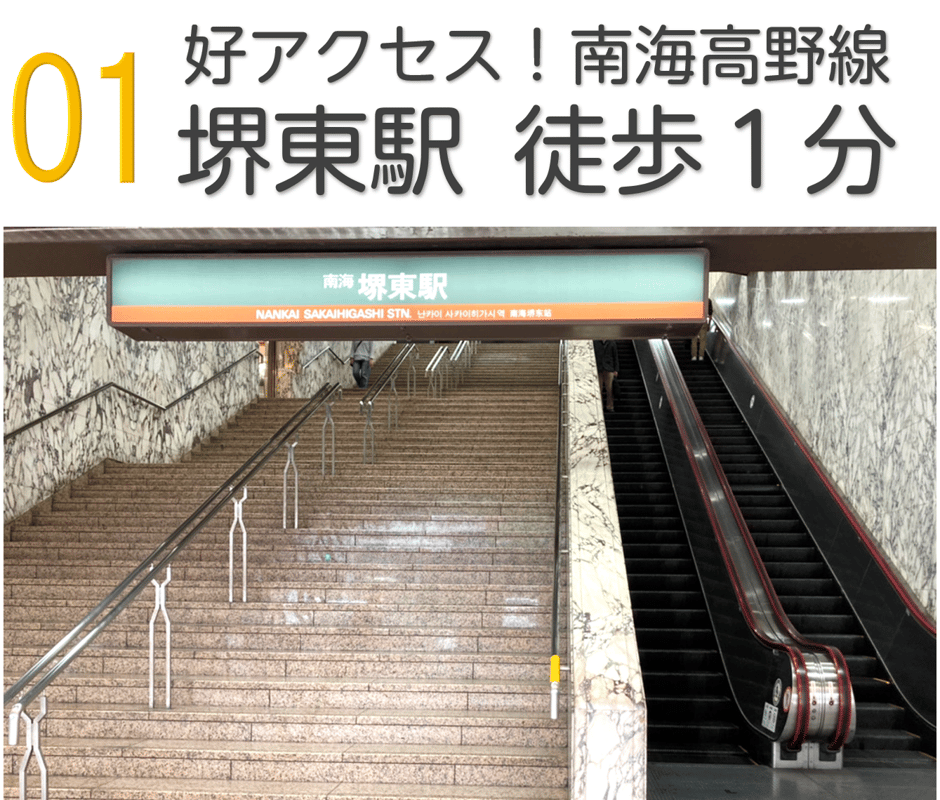 南海高野線「堺東駅」北出口(北西口)徒歩1分